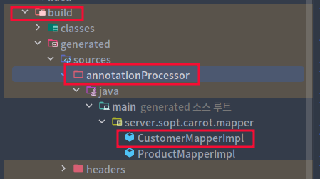Mapper Interface를 구현하게 되면 매핑이 필요한 객체에 대해 자동으로 구현체를 만들어주는데 현재 Customer와 CustomerDTO는 필드값이 동일해 mapping의 과정이 너무 간단했습니다