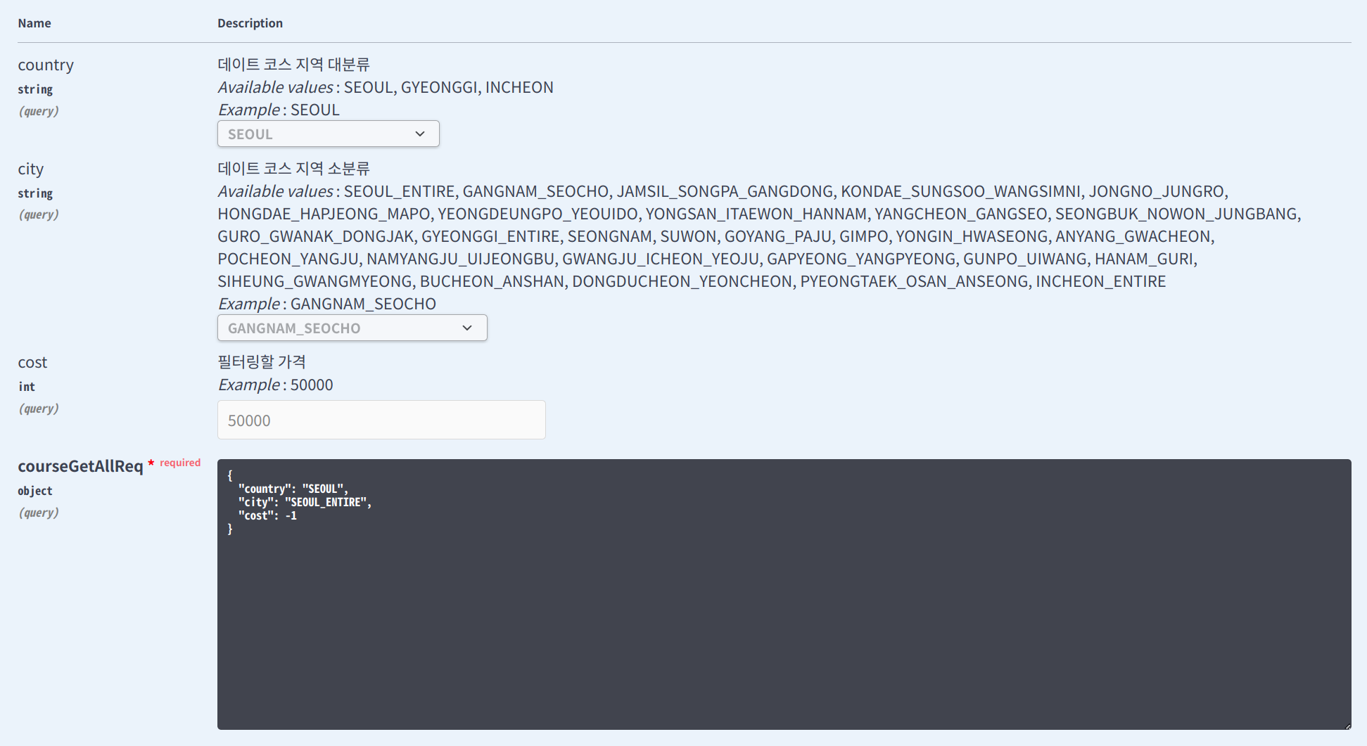 - 입력 매개변수: CourseGetAllReq 객체를 통해 검색 조건을 전달받아요.