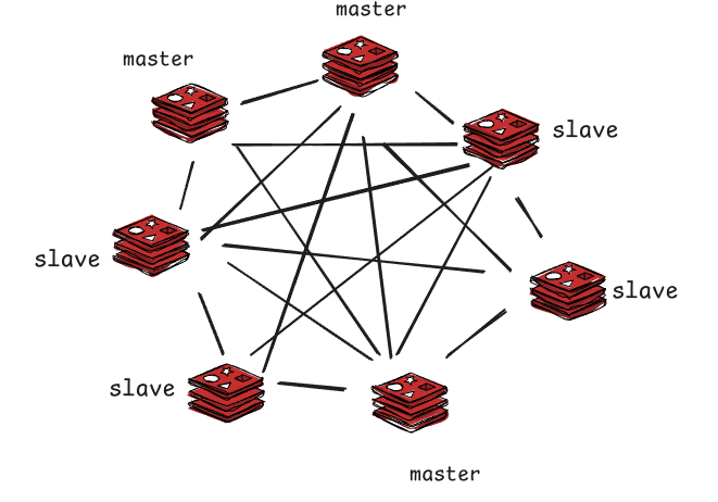 노드는 가십프로토콜과 Raft라는 분산합의 알고리즘을 기반으로 각 노드의 설정정보를 공유하고 페일오버 기능을 제공한다. 각 노드는 상대 노드로 핑을 보내고 응답을 받아 해당 노드가 정상적인지 확인한다. 단 클러스터 내 모두 연결되어 있어도 모든 노드에 핑을 주고받는 풀메시를 사용하지는 않는데 그 이유는 노드수가 늘어날수록 보내는 핑의 양이 급격히 늘어나 클러스터 성능이나 네트워크 대역폭에 영향을 줄 수 있기 때문이다.