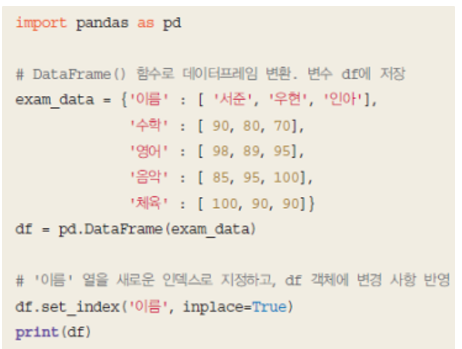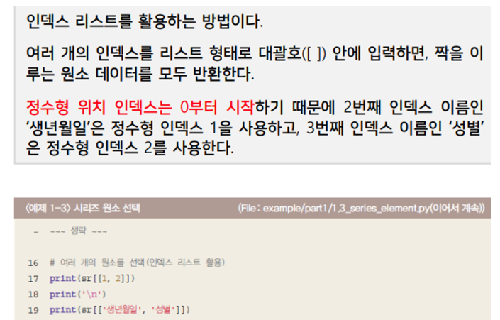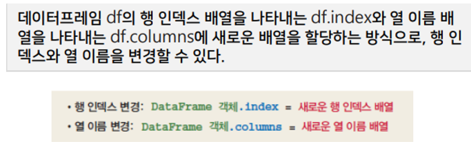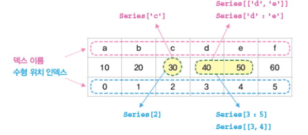 - 인덱스 종류 : 정수형 위치인덱스 , 인덱스 이름 (column)