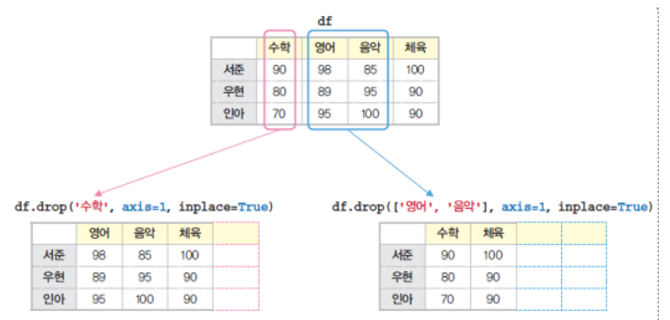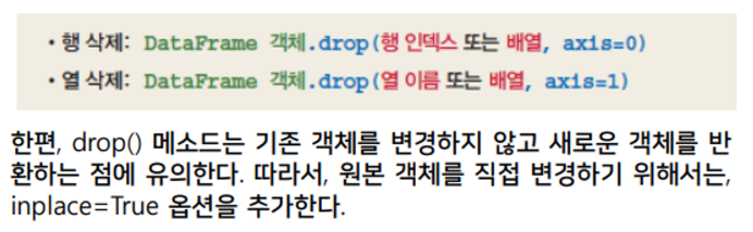 - 참고 : 행 삭제할때는 axis=0안해도댐 , 축 aixs=1이라면 열 삭제