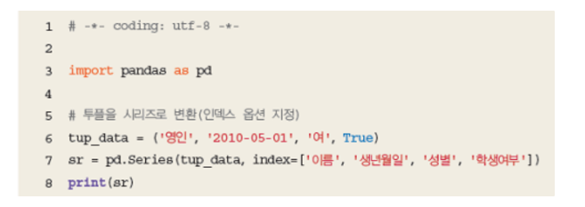 - 딕셔너리 구조와 비슷 → 시리즈로 변환