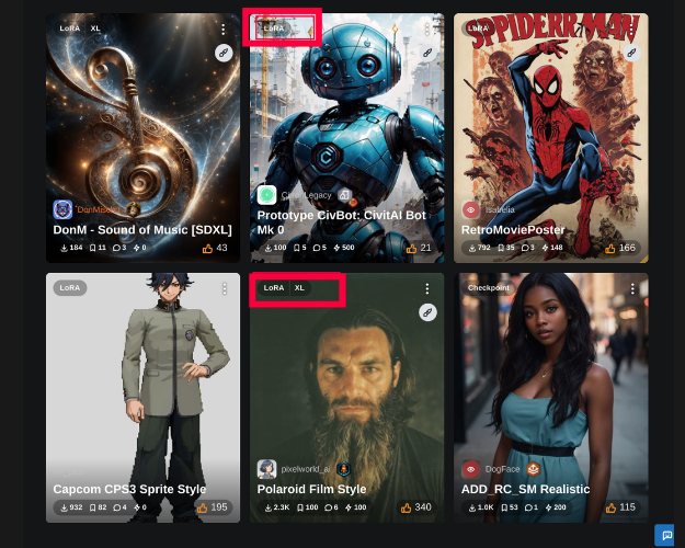 우선 Checkpoint , Lora , SDXL, SD 단어만 가볍게 보기
