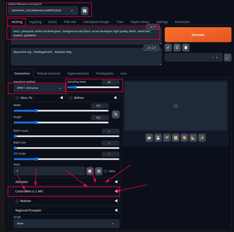 - 다시한번 Generate! 잘 안나오면 controlnet 중요도를 2로 올려봅시다.